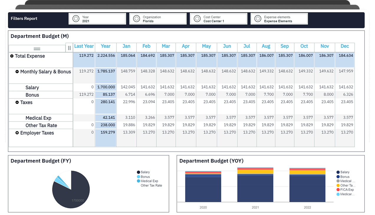 Uma Solução testada e aprovada, pronta para usar, que oferece módulos autônomos para dar suporte ao processo de Planejamento e Análise Financeira Estendida.