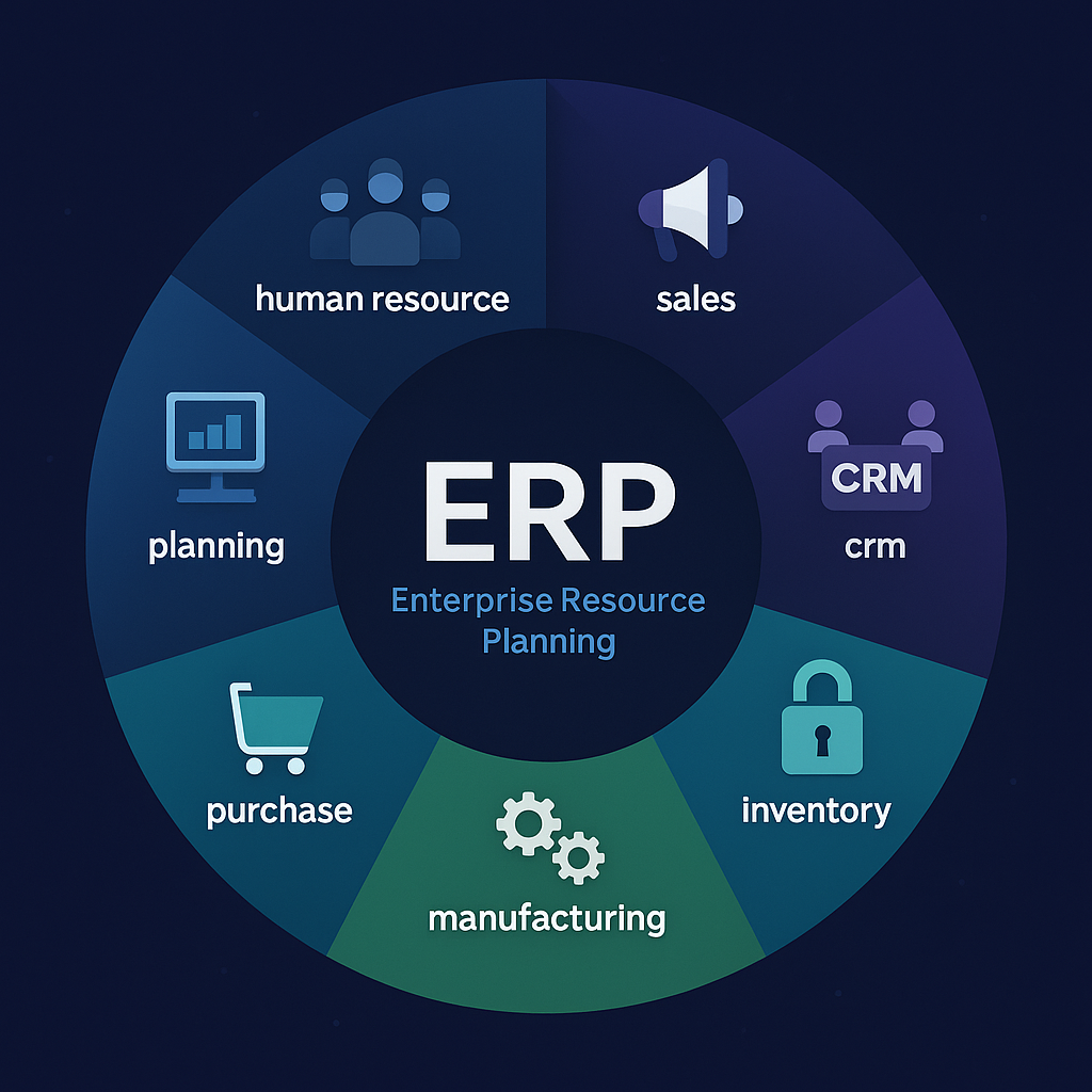 Um ERP é um sistema centralizado de software que integra processos e funções chave de negócios em uma organização, melhorando a eficiência e fornecendo visibilidade em tempo real em várias áreas como finanças, RH, estoque, compras e vendas.